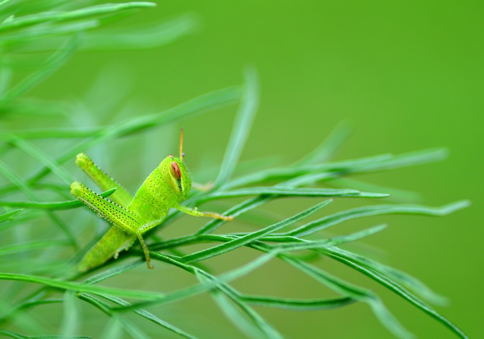 コスモスの葉の上で休んでいたイナゴの幼虫です。